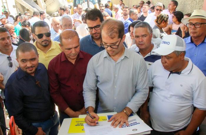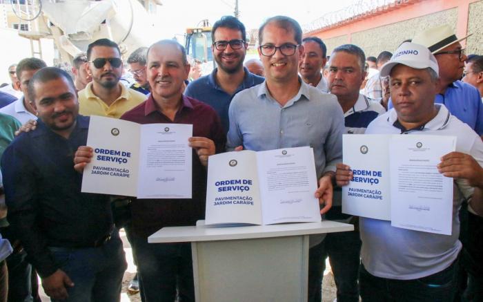 Nesta segunda-feira, 6 de fevereiro, ocorreu a assinatura da ordem de serviço para a obra de drenagem e pavimentação de ruas do bairro Jardim Caraípe, na rua Rogério Rego. Estiveram presentes no evento o prefeito Dr. Marcelo Belitardo, a primeira-dama e secretária de Assistência Social Penélope Belitardo, o presidente da Câmara Municipal e vereador Tequinha Brito, os vereadores Carmino Oliveira, Jucélio Conceição, Luciano Ferreira, Marcelo Teixeira, Matheus Guerra e Luizinho, além dos demais representantes municipais e moradores da região.
