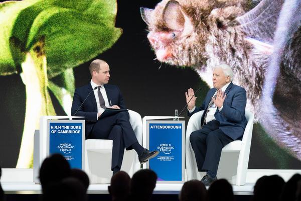 Nesta terça, o príncipe William entrevistou o naturalista, David Attenborough, 92 anos, a esse respeito na plenária do Fórum.