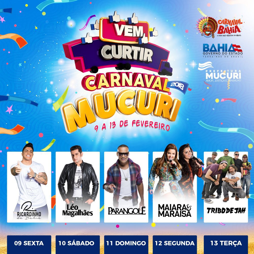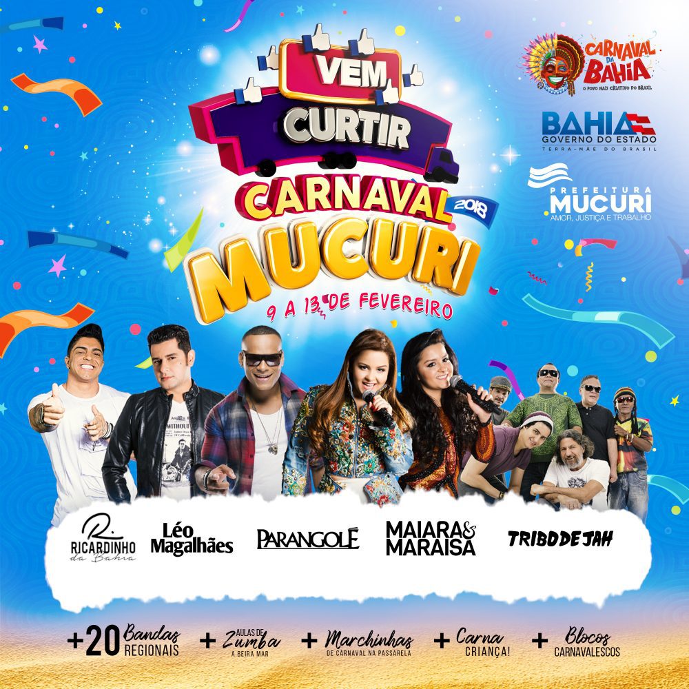 Amanhã, 9 de fevereiro, começa o carnaval de Mucuri. E, segundo o prefeito dr. Carlos Simões, a festa que já seria boa, com atrações anunciadas desde dezembro de 2017, promete ser ainda melhor, graças ao incremento da Bahiatursa, o que possibilitou um maior número de atrações. “Anunciamos desde dezembro e tivemos a grata satisfação de receber um incremento da Bahiatursa. Na sexta, dia 9, o Ricardinho da Bahia, Léo Magalhães, no sábado, dia 10, dia 11 será Parangolé, segunda, 12, dupla sertaneja sucesso no Brasil Maiara e Maraisa, e terça, último dia, Tribo de Jah”, contou o prefeito de Mucuri.