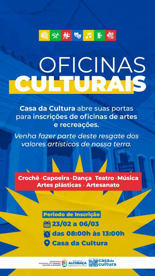 Estão abertas as inscrições para as oficinas culturais promovidas pela Casa da Cultura, uma iniciativa que busca incentivar novos talentos e fortalecer os valores artísticos locais. A ação é voltada para pessoas de todas as idades que desejam aprender, desenvolver habilidades e se envolver com a arte.