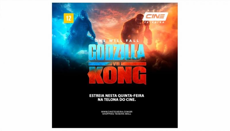 Cine Teixeira está de volta: estreia nesta quinta-feira (29) “Godzilla vs. Kong” na telona