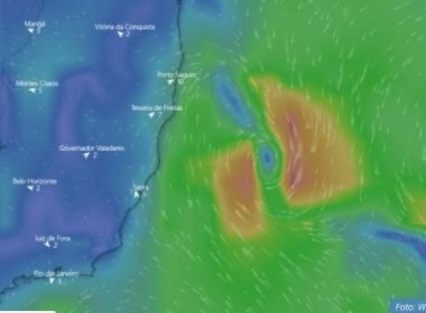 O ciclone tropical que se formou no sábado (23) próximo a costa do Espírito Santo e ao Litoral Sul do Estado da Bahia está em alto-mar, a 150 quilômetros do município baiano de Porto Seguro e não deve passar pelo continente.