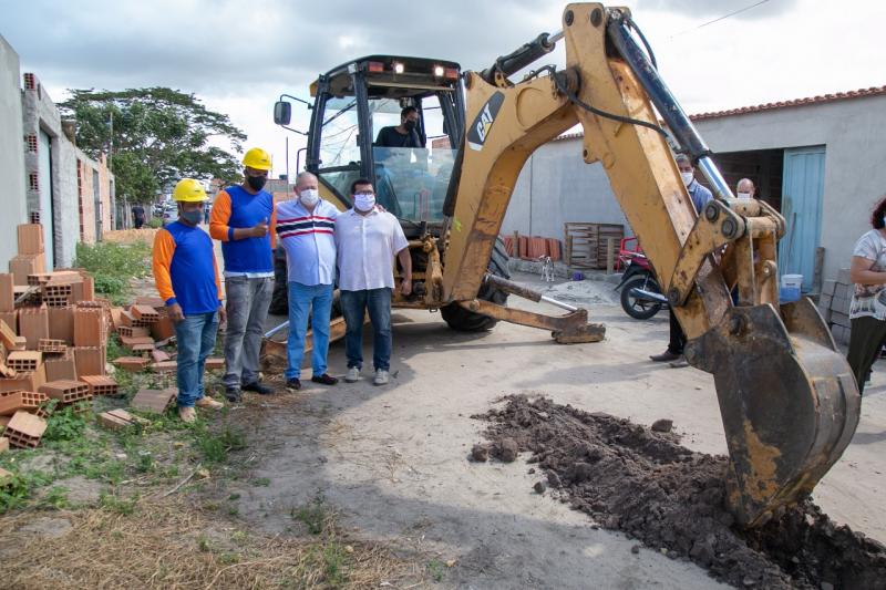 As obras de instalação de rede abastecimento de água tiveram início na manhã de terça, e o prefeito, Temóteo Brito, esteve no local.