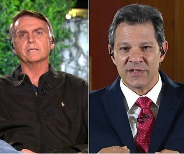 Um dia após o primeiro turno das eleições, os candidatos a presidente Jair Bolsonaro (PSL) e Fernando Haddad (PT) concederam entrevista ao Jornal Nacional e afirmaram que vão governar respeitando a Constituição.