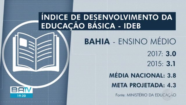 Em contrapartida, no ensino fundamental inicial, que é do 1º ao 5º ano, a Bahia teve uma melhora em 2017. O estado saiu dos 4,7 pontos, registrados para 2015, para 5,1. Já no ensino fundamental final, que é do 6º ao 9º ano, o índice foi o mesmo de 2015: 3,7 pontos.