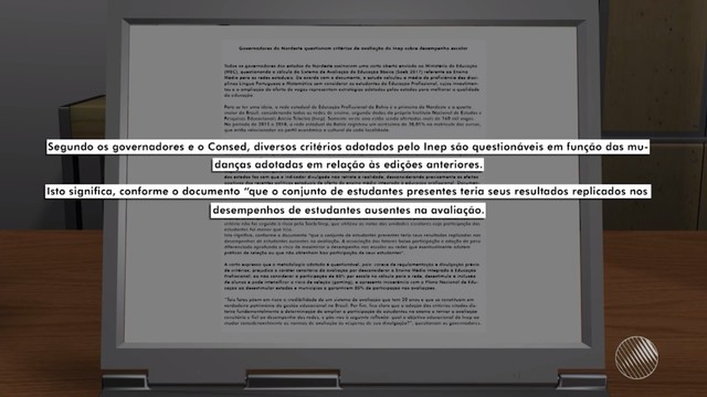 Após a divulgação do resultado, governadores do nordeste, incluindo da Bahia, enviaram uma carta ao MEC, reclamando da metodologia do teste. Eles dizem que houve mudança e que, diferentemente dos outros anos, a nota do aluno que fez o exame foi replicada para o aluno que não fez.