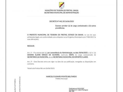 Teixeira de Freitas – A secretária municipal de Esportes e Lazer, Sandra Elaine Drago, foi oficialmente exonerada do cargo nesta quarta-feira (26), por meio do Decreto Municipal nº 442/2025, em meio a um escândalo envolvendo o suposto desvio de combustível público. A decisão da Prefeitura ocorreu paralelamente à abertura de um Processo Administrativo Disciplinar (PAD nº 11/2025) pela Procuradoria Geral do Município (PGM), que visa apurar as irregularidades.