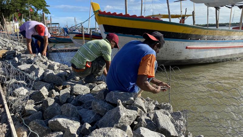 Essa obra aumentou o recuo do Rio Caravelas, que já invadia o passeio de casas e estabelecimentos comerciais, construídos ao longo da região que se estende do Mirante do Cascalho à Praça dos Pescadores.
