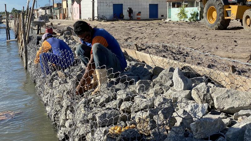 As dificuldades, além da captação de recursos, aumentaram em razão de o trabalho ser realizado apenas em maré baixa, com serviços executados entre 2 e 3 horas diárias, avançando não mais que 2 metros nos dias favoráveis. A obra tem 2 metros de altura, por 7 metros de largura e mais 630 de cumprimento.