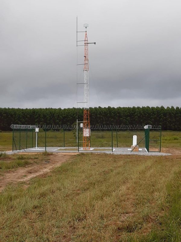 O painel solar fornece a energia necessária para alimentar todos os equipamentos de medição, sensores meteorológicos, processamento e comunicação instalados na estação meteorológica do sítio secundário, que capta informações como nível de umidade relativa, direção e velocidade do vento.