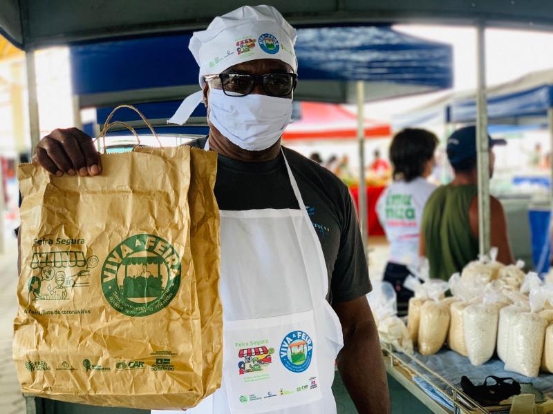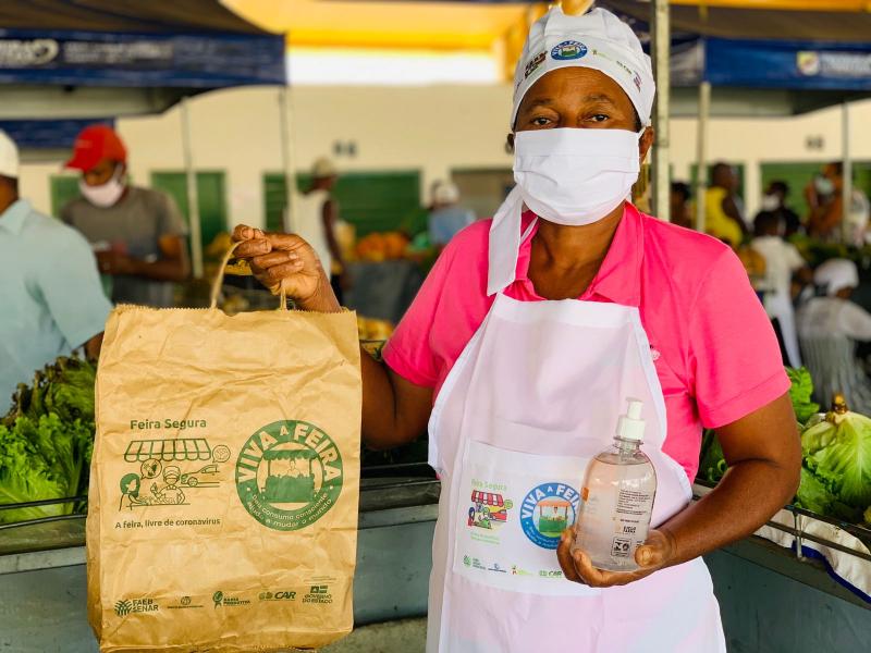 Os kits, chamados de Feira Segura — Viva a Feira, contêm avental, máscaras, álcool em gel, toucas padronizadas e folhetos com orientação sobre os protocolos de segurança, com dicas de proteção durante o enfrentamento da pandemia do novo coronavírus.