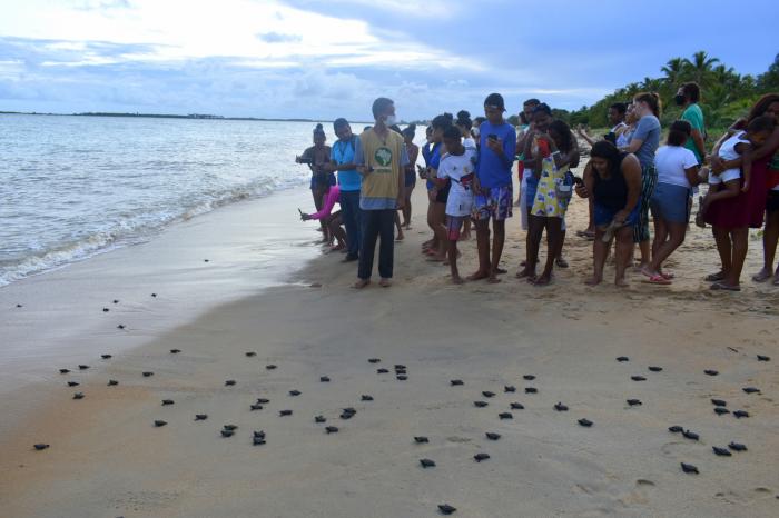 Filhotes de tartarugas são soltas no litoral de Caravelas