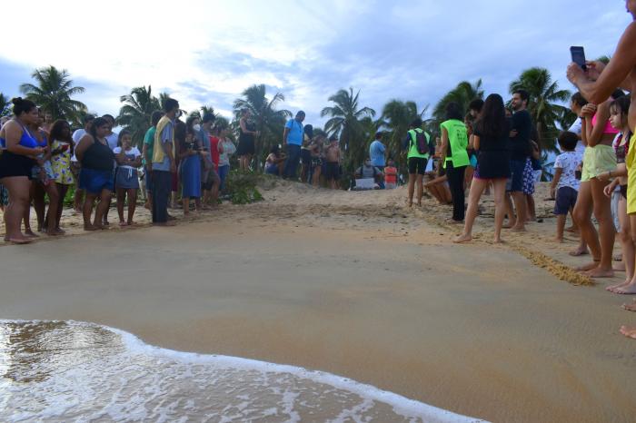 Filhotes de tartarugas são soltas no litoral de Caravelas