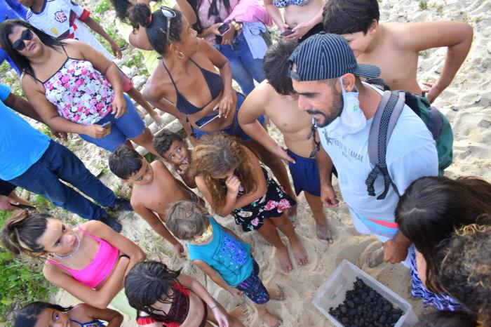 A soltura acontece sempre no final da tarde, como aconteceu nesta quinta-feira (17), para não sofrerem com o sol. Assim que nascem, são soltas para evitar ficar o menor tempo possível no local de nascimento.