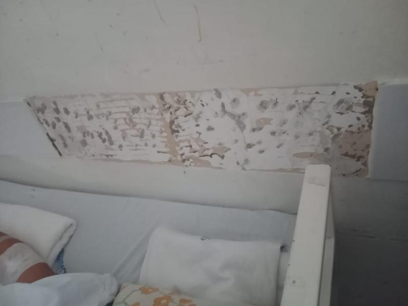 Nossa equipe teve acesso à imagens da situação interna do HMTF, que mostram paredes deterioradas, pintura estragada, cadeiras quebradas, e as camas coladas nas paredes.