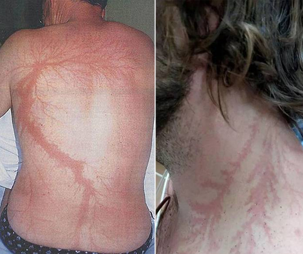 Imagens revelam marcas deixadas na pele de quem foi atingido por raio