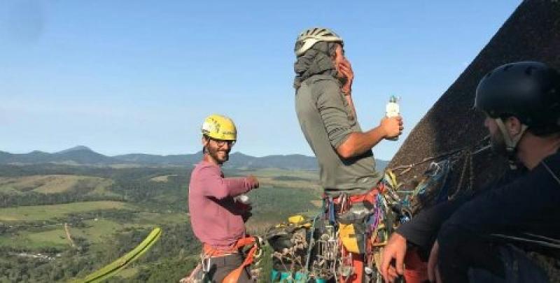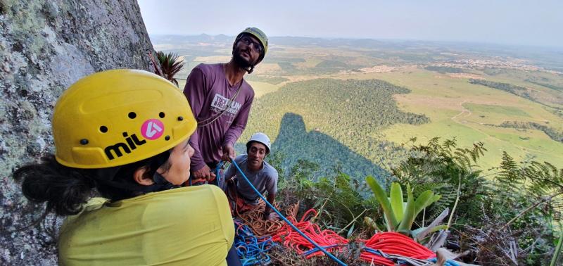 Participaram também da aventura os escaladores Deusdato Cotrim, o Guga, Guido Mintz e Matheus Sguilaro, que posaram no cume do monte e ficaram impressionados com as paisagens ao seu redor.