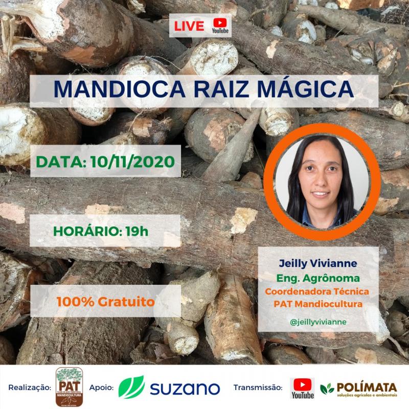 A cadeia produtiva da mandioca é o tema principal de duas lives gratuitas que acontecem neste mês de novembro, organizadas pela Polímata, com o apoio da Suzano. Os encontros são direcionados a agricultores, técnicos e interessados no assunto e dão continuidade às ações de capacitação realizadas pelo Plano de Ação Territorial (PAT) da Mandiocultura no Extremo Sul da Bahia. A primeira live acontece na próxima terça-feira, 10 de novembro, a partir das 19h, e aborda o assunto “Mandioca Raiz Mágica”. No dia 17, no mesmo horário, a conversa é sobre “Farinheira Sustentável.