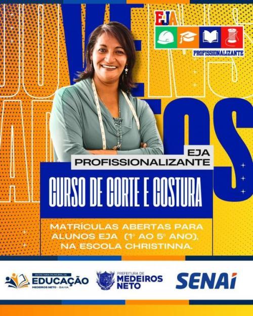 A Prefeitura de Medeiros Neto, por meio da Secretaria Municipal de Educação, está com matrículas abertas para as turmas da Educação de Jovens e Adultos (EJA). A modalidade, agora profissionalizante (Segmento I), será oferecida na Escola Christinna, no bairro Uldurico Pinto.