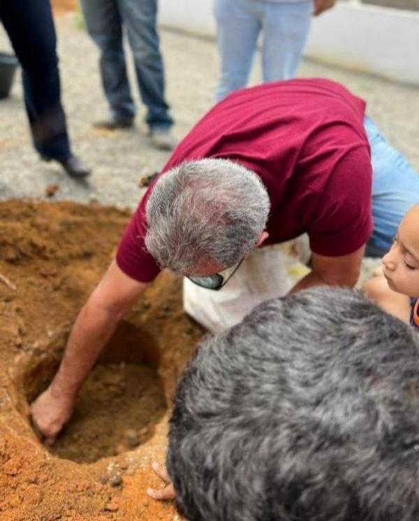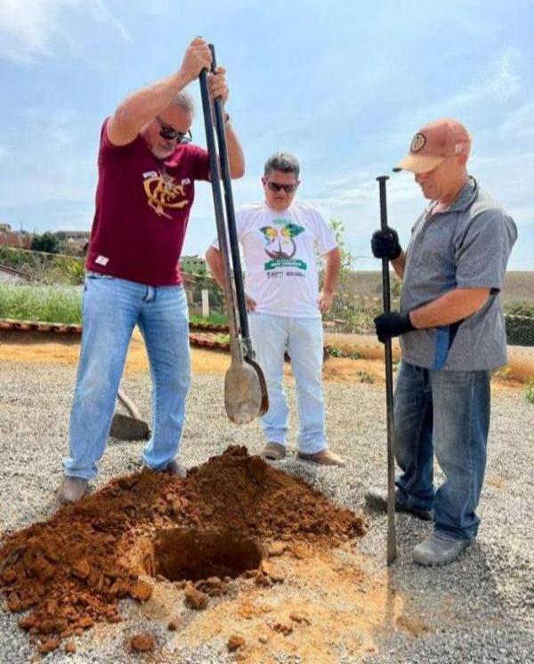 Eles realizaram o plantio de espécies florestais nativas, no período matutino e vespertino, na área interna da unidade de ensino, assim como no seu estacionamento.