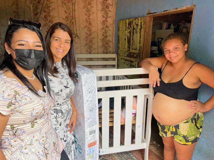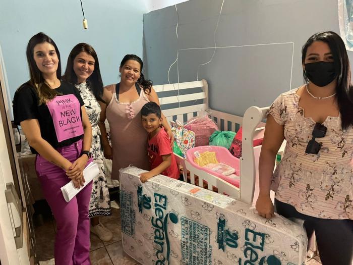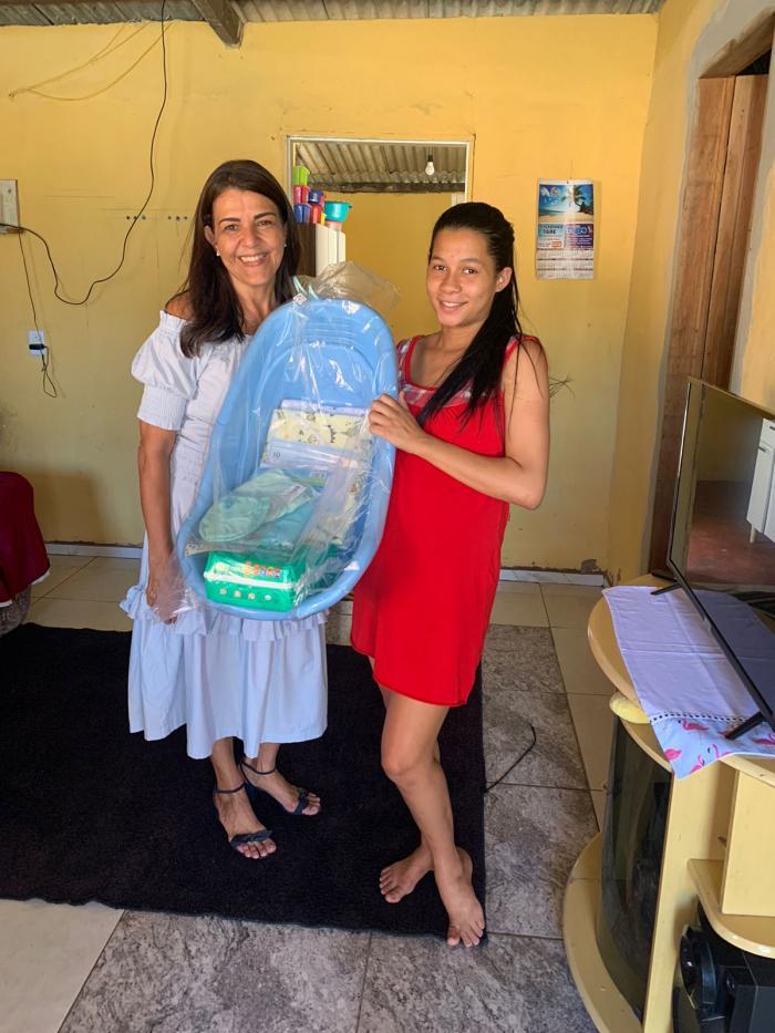 Na oportunidade, foram distribuídos berço, colchão para o berço, kits de higiene pessoal e de limpeza, cesta básica, além de jogos de cama, beneficiando várias famílias.