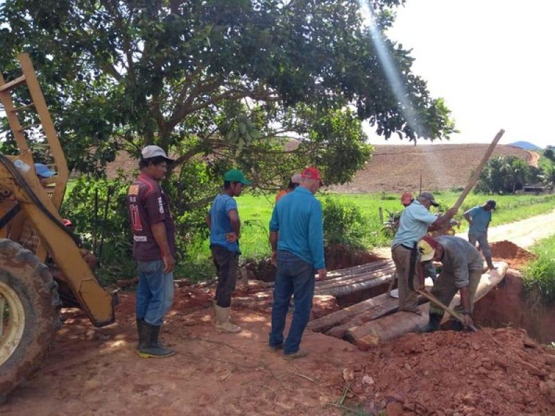 Uma ponte de madeira, que dá acesso à comunidade Farinha Lavada, ficou danificada por causa da chuva que atingiu a cidade nos últimos dias, segundo os moradores. Eles ficaram ilhados e tiveram que fazer um mutirão para improvisar uma passagem.