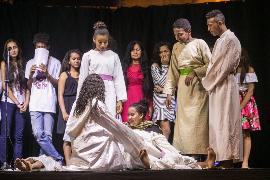 Mais uma vez a Praça da Bíblia foi tomada pelo encantamento das apresentações de jovens e crianças da Casa da Cultura. Na noite de quinta-feira, 29 de novembro, a capoeira, dança, violão e o teatro reuniu centenas de adolescentes e crianças na abertura da Mostra Cultural.
