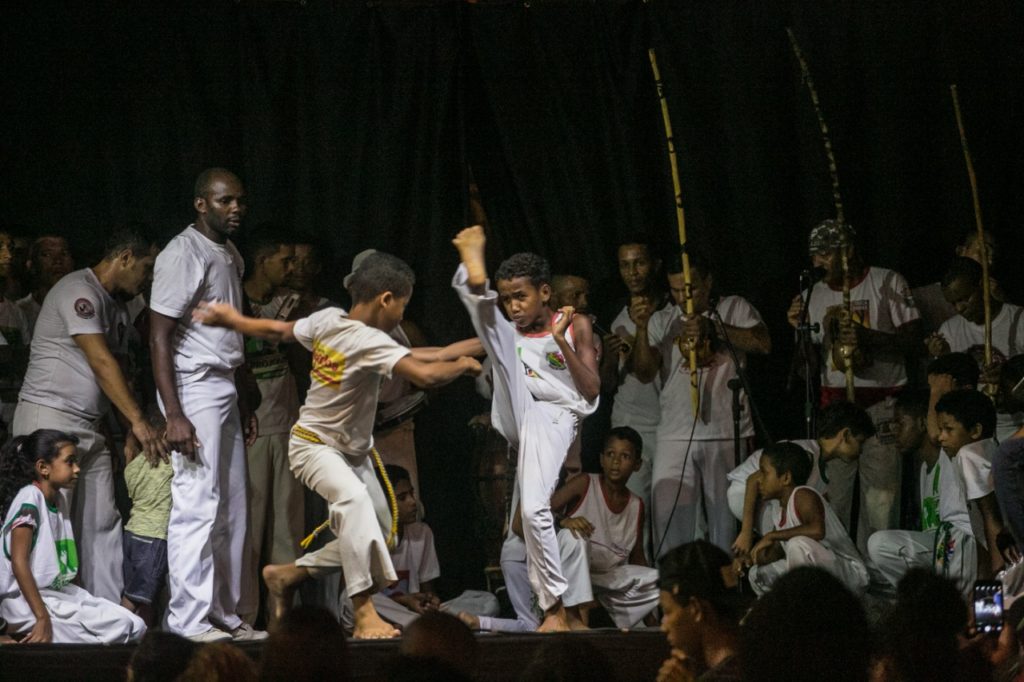 A capoeira também envolveu batismo e graduação em cordas. O foco das apresentações da noite foram as oficinas que estão espalhadas nos bairros, o que deve acontecer até sábado, sendo o domingo para apresentações especiais.