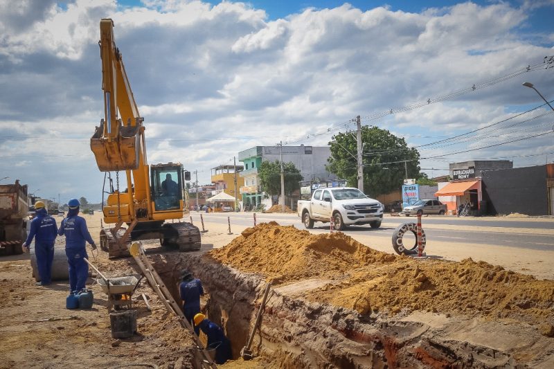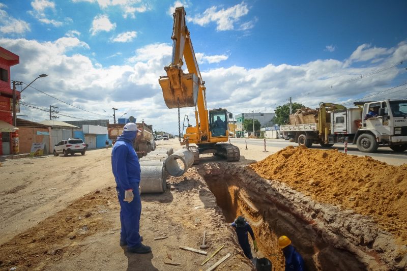 A obra está na fase de drenagem para a execução do canteiro e estava paralisada devido à revisão do projeto, que necessitava de aprovação da fiscalização do Derba.