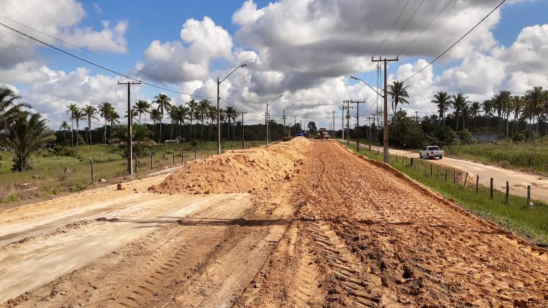 Obras na pista estão corrigindo depressões na Rodovia BA-698 em Mucuri