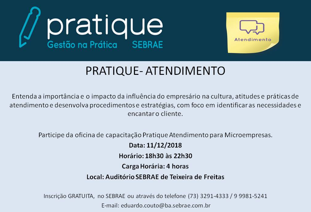 Teixeira de Freitas – Conseguir satisfazer o cliente é o desejo de todo empreendedor, e o atendimento é peça fundamental para chegar lá. Para ajudar quem atua nessa área, o Sebrae oferece a oficina gratuita Pratique Atendimento, que acontece nesta terça-feira, dia 11 de dezembro, no auditório do Sebrae em Teixeira de Freitas. A palestra tem carga horária de 4h e começa às 18h. O conteúdo deste módulo trará um modelo de sucesso e atitudes que contribuem para a satisfação do cliente.