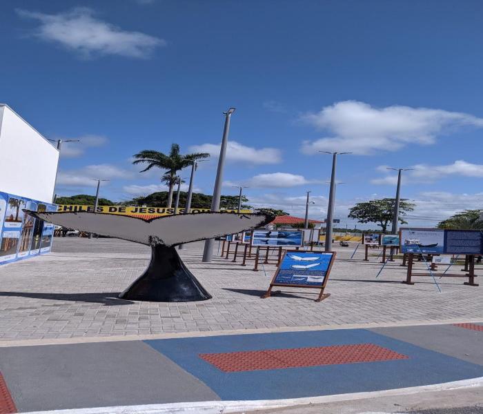 Praça de Eventos de Caravelas sedia exposição fotográfica sobre o trabalho de proteção das baleias jubarte