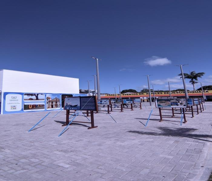 As imagens das baleias jubartes estão expostas ao ar livre, até a próxima quarta-feira, dia 11, na Praça de Eventos Dr. Aquiles de Jesus Siquara, no centro de Caravelas.