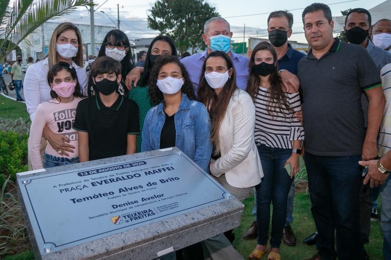 Localizada em um dos lugares mais movimentados de Teixeira de Freitas, a praça Everaldo Maffei foi entregue a população nesta quinta-feira, 13 de agosto. A praça fica localizada na avenida Getúlio Vargas, no ponto que passou por ampliação das vias entre o posto Pioneiro e o hospital municipal, e representou uma grande mudança no trânsito e no paisagismo da cidade.