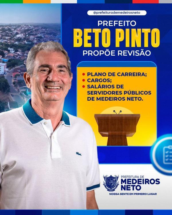 Prefeito Beto Pinto propõe revisão do Plano de Carreira, Cargos e Salários de Servidores Públicos de Medeiros Neto