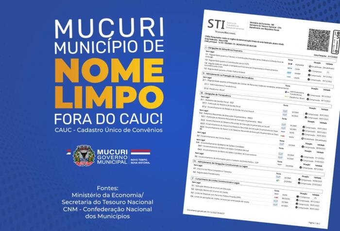 E acrescentou: “Agradeço primeiramente a Deus e a dedicação da minha equipe de governo, em especial a secretaria de finanças e tributos, obras, serviços públicos, saúde, educação, planejamento, composição jurídica, contadores e a secretaria de administração, que não economizaram esforços para encerrarmos 2022 e iniciarmos 2023 fora do CAUC Nacional. Nosso governo trata o dinheiro público com seriedade e zelo, buscando sempre o melhor para nossa gente. ‘Porque dele, e por ele, e para ele são todas as coisas’, romanos 11:36. Hoje Mucuri é um município de nome limpo, ou seja, tudo é Deus! – Novo Tempo. Nova História”, concluiu o prefeito Robertinho.