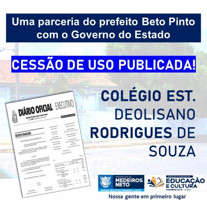 Com a publicação da Cessão de Uso, a Prefeitura de Medeiros Neto visa a readequação total do antigo Colégio Deolisano. Além dessa conquista, os estudantes do ensino médio também ganharam uma nova escola estadual de tempo integral dentro da sede e com estrutura moderna já divulgada.