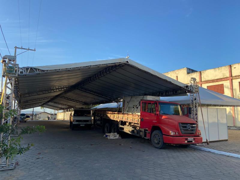Prefeitura de Medeiros Neto começa a receber megaestrutura para Feira Cidadã.