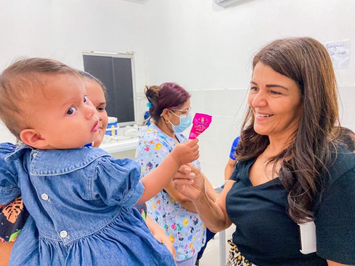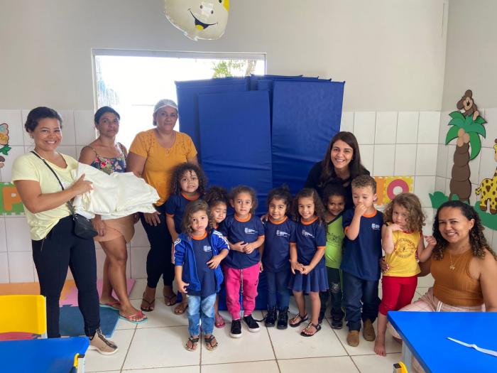 Na oportunidade, a secretária de Assistência Social, Lana Pinto, entregou para a Creche Municipal do povoado nove colchonetes e jogos de lenções.