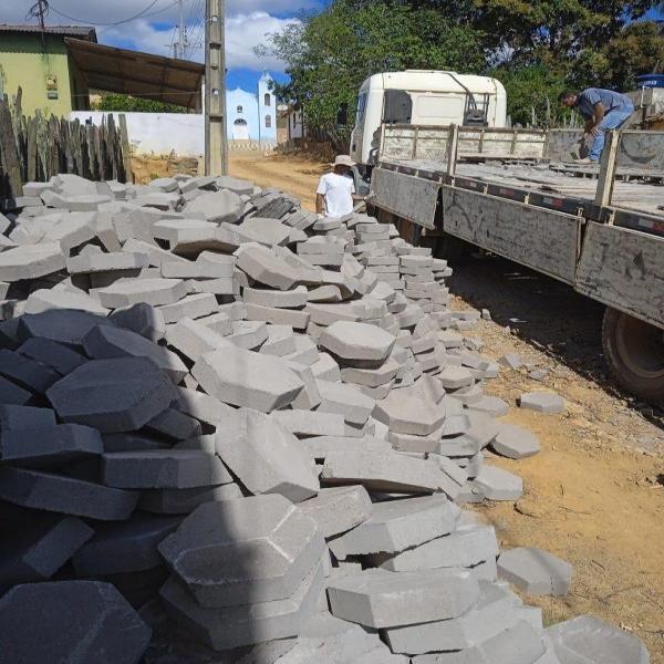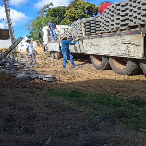 A Prefeitura Municipal de Medeiros Neto, por meio da Secretaria Municipal de Obras e Infraestrutura, iniciou na manhã desta terça-feira, 11 de julho, o descarregamento dos blocos sextavados para realização do calçamento de vias públicas no povoado de Água Limpa.