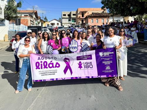 A Prefeitura Municipal de Medeiros Neto, por meio da Secretaria de Assistência Social, realizou na manhã desta quarta-feira (27) uma caminhada em alusão ao Agosto Lilás, campanha nacional de enfrentamento à violência contra a mulher.