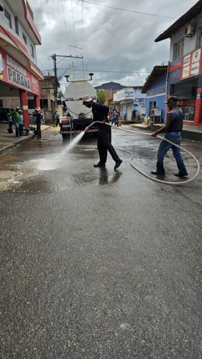 A Prefeitura de Medeiros Neto iniciou um trabalho emergencial de limpeza e lavagem das ruas do centro da cidade que foram atingidas pelas recentes inundações provocadas pelas fortes chuvas. A ação é coordenada pela Secretaria Municipal de Obras e Infraestrutura, que mobilizou equipes para atuar na remoção de lixo, entulhos e resíduos deixados pela água nas vias públicas.
