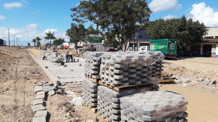 Para o início das obras de pavimentação da Avenida Brasil, a via antes recebe obras de escavação, aterramento apropriado, patrolamento, depois os rolos compactadores fizeram o trabalho de compactação do solo para não comprometer todas as camadas acima e finalmente a pavimentação intertravada de blocos de concreto, que consiste na utilização de peças pré-moldadas com algumas características específicas para esse tipo de instalação, pois permite uma pavimentação permeável, que faça o escoamento da água da chuva para o lençol freático de forma eficiente.