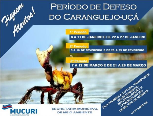 O defeso protege o caranguejo no período de reprodução conhecido como ‘andada’, quando machos e fêmeas saem das tocas para acasalar e colocar ovos. Nesta época a espécie fica mais vulnerável à captura, portanto, fica proibido capturar, transportar, beneficiar, industrializar e comercializar o marisco. Descumprir a ordem é crime ambiental previsto na Lei nº 9.605/91.
