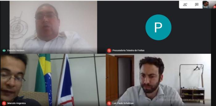 Representantes da Prefeitura Municipal de Teixeira de Freitas participaram, na tarde desta quinta-feira, 30 de abril, da videoconferência realizada pela Procuradoria Federal. O tema em debate foi a aglomeração formada em filas de espera para atendimento nas agências bancárias. O procurador da República da Justiça Federal em Teixeira de Freitas, dr. Luiz Paulo Schulman, convidou para a reunião virtual o superintendente regional da Caixa Econômica Federal, Evandro Versiani e representantes de outras prefeituras da região para as discussões.