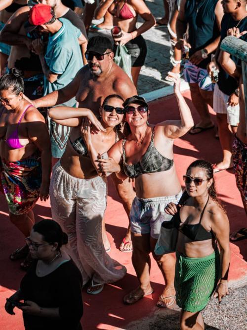 Um dos grandes destaques do dia foram os dois arrastões realizados na orla, que contagiaram o público com muita energia. O primeiro ficou por conta de Xelão, que abriu a programação com interação e animação. Na sequência, o arrastão comandado pelo grupo Oz Bambaz manteve o ritmo e transformou a orla em um verdadeiro corredor da folia, com a participação ativa de moradores e turistas.