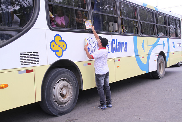 Na ação, os agentes de endemias entregaram panfletos, adesivos e explicavam a importância do combate ao mosquito Aedes Aegypt na prevenção destas doenças.