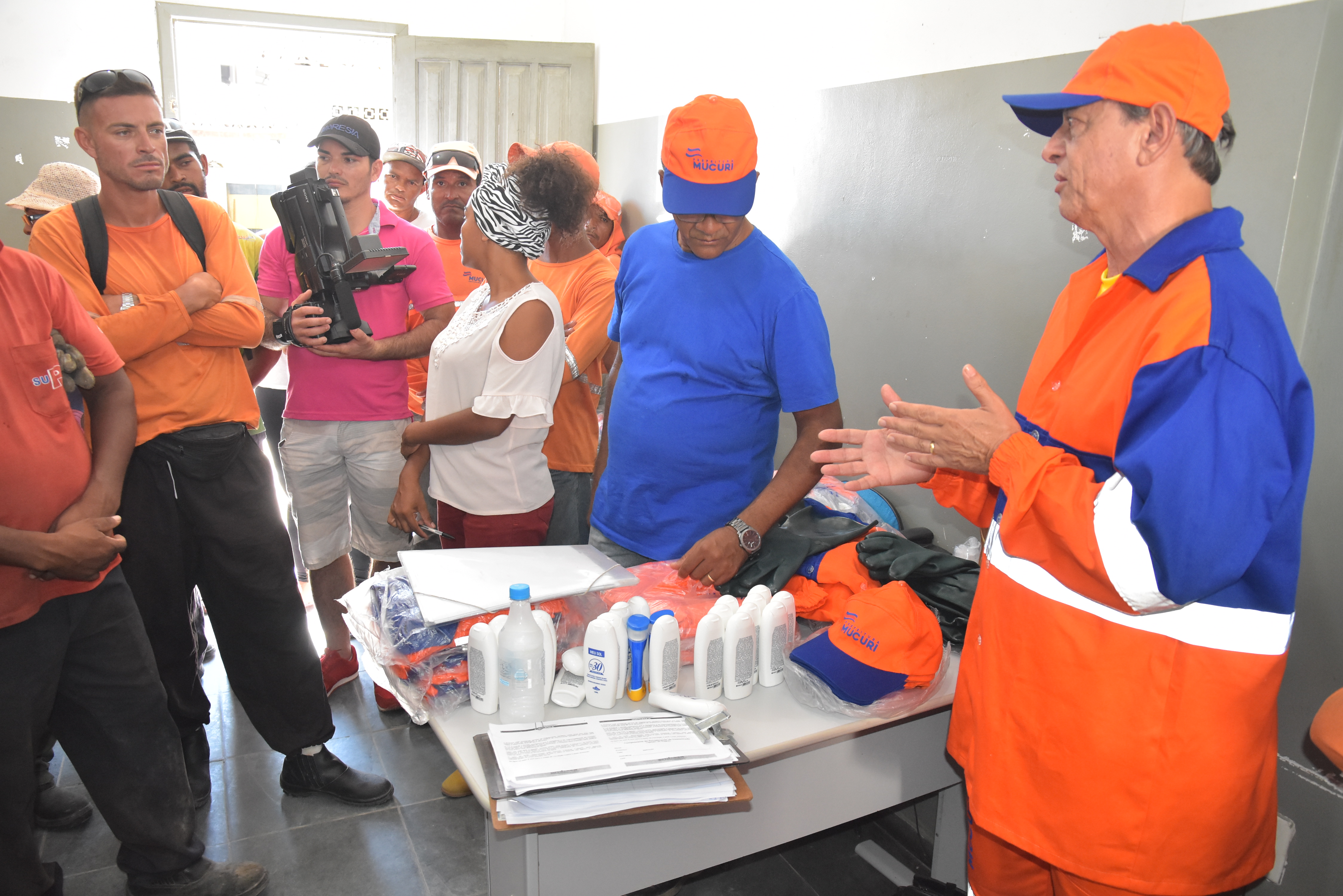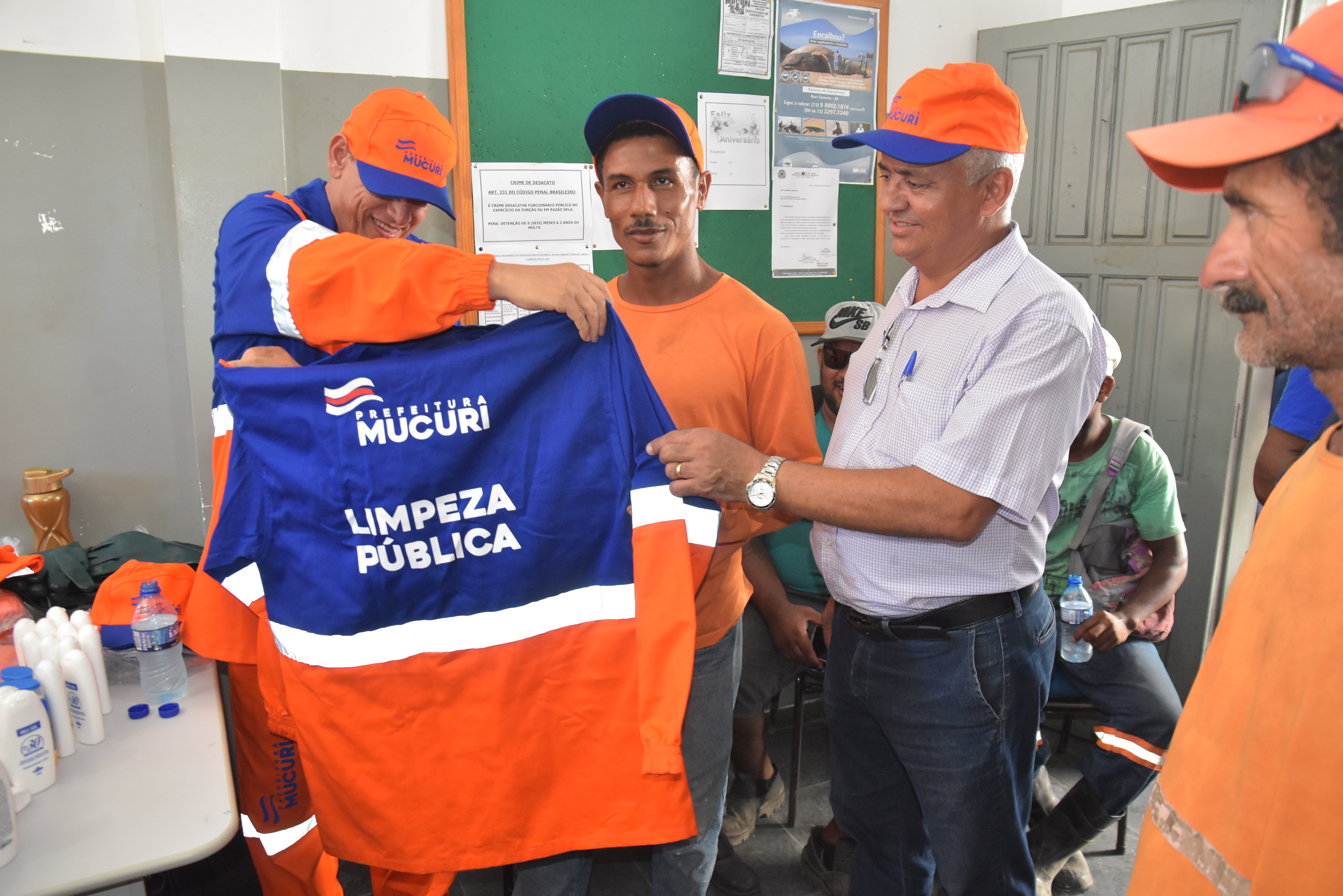 Na manhã anterior, na sexta-feira, quem também recebeu uniformes e equipamentos novos foram os garis. Mais uma vez o prefeito fez questão de ir pessoalmente, vestido a caráter, fazer a entrega.