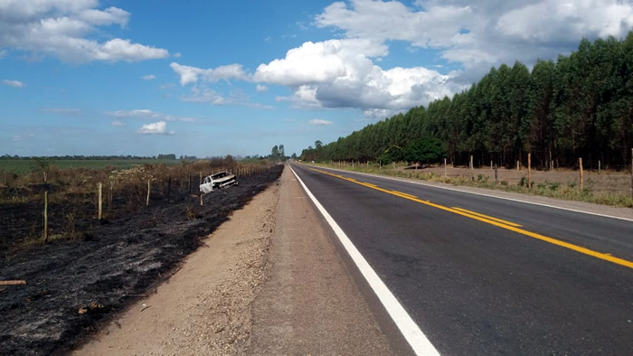 O maior problema, ainda segundo a PRF, é que o Prisma, ao sair da pista, capotou no meio das chamas provocadas na vegetação e também pegou fogo, ocasionando queimaduras nos três passageiros. O motorista António Silva, que conseguiu deixar rapidamente o veículo teria sido fundamental para que os demais ocupantes também conseguissem sair antes que as labaredas se alastrassem.
