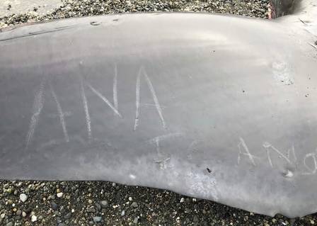 A presença da carcaça atraiu a atenção de muitas pessoas. Uma dupla em especial virou notícia mais do que a baleia morta. As duas turistas subiram no animal morto para fotos e, com uma pedra pontiaguda, vandalizaram o seu corpo. Escreveram mensagens, entre elas “ANA TE AMO”.